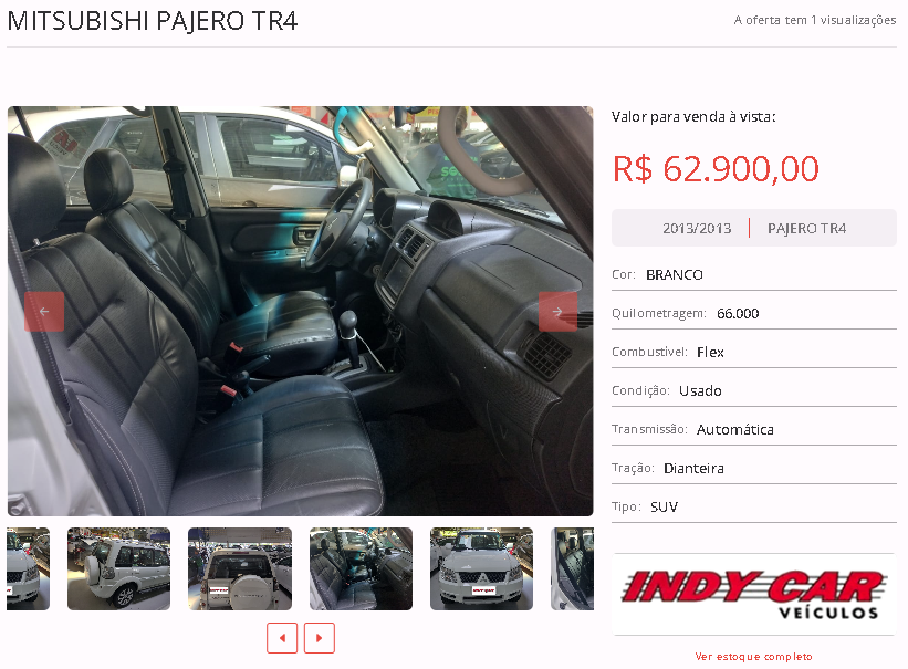 Entre as opções disponíveis em nosso site, está um MITSUBISHI PAJERO TR4, cor branca, ano 2013/2013, na loja INDYCAR VEÍCULOS. Todas as informações de contato estão disponíveis na nossa plataforma.