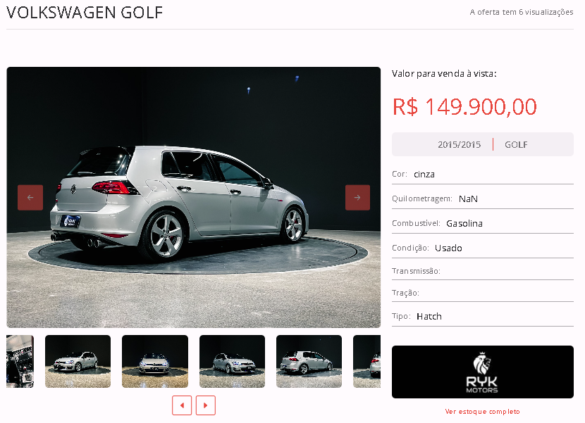 Entre as opções disponíveis em nosso site, está um VOLKSWAGEN GOLF, cor cinza, ano 2015/2015, na loja RYK MOTORS. Todas as informações de contato estão disponíveis na nossa plataforma.