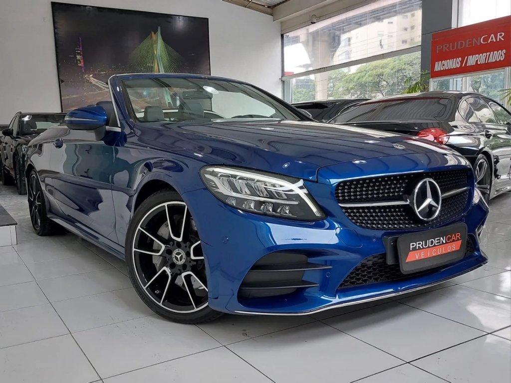 Entre as opções disponíveis, está uma Mercedes C-300 2.0 Turbo Cabrio 2019/2019. Com apenas 11.000km, o veículo tem painel digital, faróis e lanternas full LED, interior preto, bancos em couro e rodas diamantadas. Todas as informações de contato estão disponíveis na nossa plataforma.