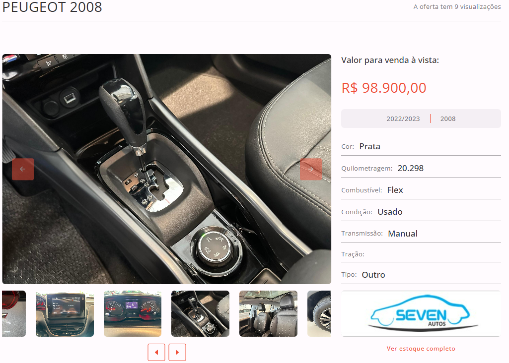 Entre as opções disponíveis em nosso site, está um PEUGEOT 2008, cor Prata, ano 2022/2023, na loja Seven Autos. Todas as informações de contato estão disponíveis na nossa plataforma.