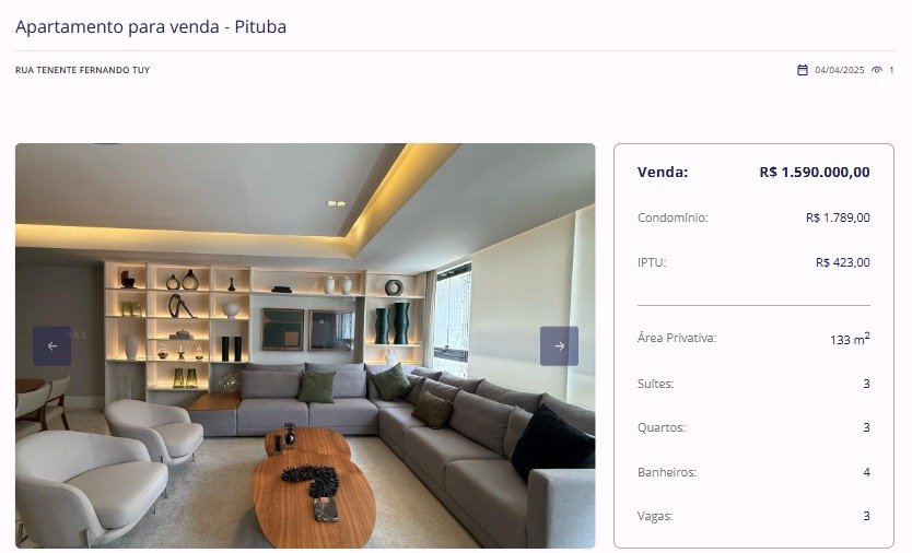 Um dos imóveis disponíveis é um apartamento de 133 m² na Pituba. O imóvel conta com 3 suítes, 4 banheiros e 3 vagas na garagem. Além disso, o imóvel possui excelente localização, móveis assinados, sistema de som integrado e automação, entre outros.