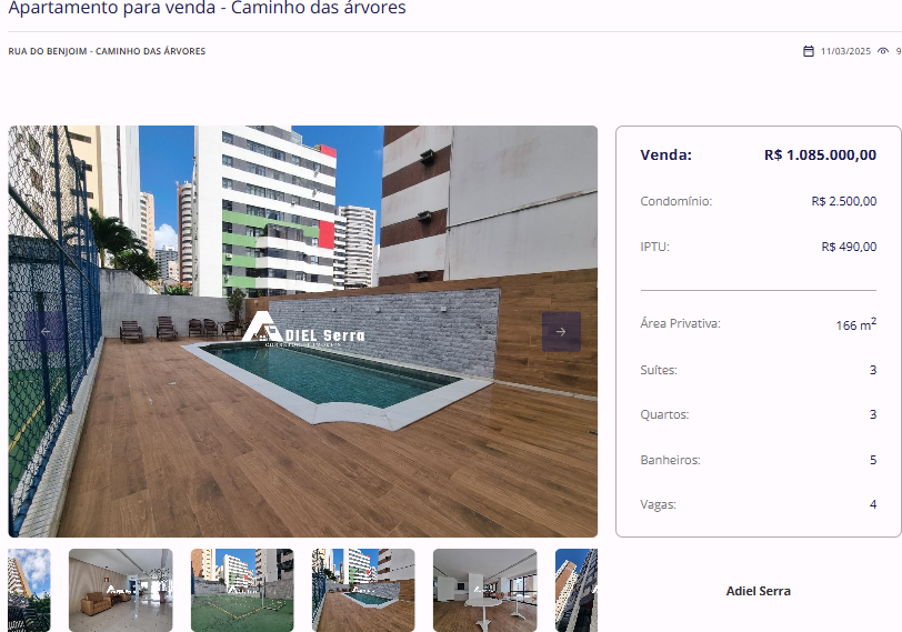 O BN Imóveis é a plataforma do Bahia Notícias voltada para a compra, venda e aluguel de imóveis. Entre os imóveis disponíveis está um apartamento de 166 m² no Caminho das Árvores. O imóvel conta com 3 quartos, sendo 3 suítes, 5 banheiros e 4 vagas de garagem. Além disso, o imóvel possui sala e cozinha amplas, lavabo, área de serviço, aquecedor elétrico, armários planejados, condomínio com salão de festas, piscina, quadra, academia e entre outros.