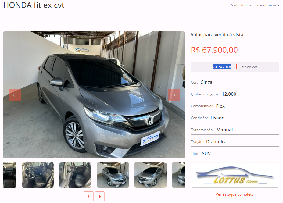 Entre as opções disponíveis em nosso site, está um HONDA fit ex cvt, cor cinza, ano 2015/2016, na loja Lottus Veículos. Todas as informações de contato estão disponíveis na nossa plataforma.