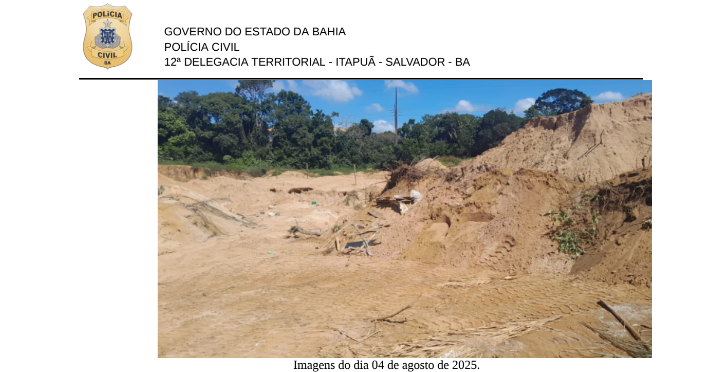 De acordo com a investigação, uma equipe da Coordenação de Perícias dos Crimes Contra o Meio Ambiente esteve no local em 27 de agosto e constatou o desmatamento de cerca de 11 mil metros quadrados de Área de Proteção Ambiental (APA) no bairro Nova Esperança, incluindo áreas próximas aos rios Joanes-Ipitanga. O relatório também aponta assoreamento e possíveis indícios de contaminação por chorume, ainda em análise laboratorial.