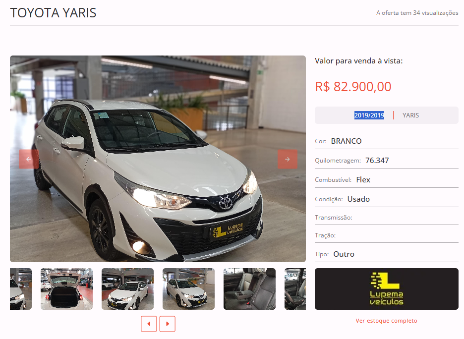 Entre as opções disponíveis em nosso site, está um TOYOTA YARIS, cor branca, ano 2019/2019, na loja Lupema Veículos. Todas as informações de contato estão disponíveis na nossa plataforma.