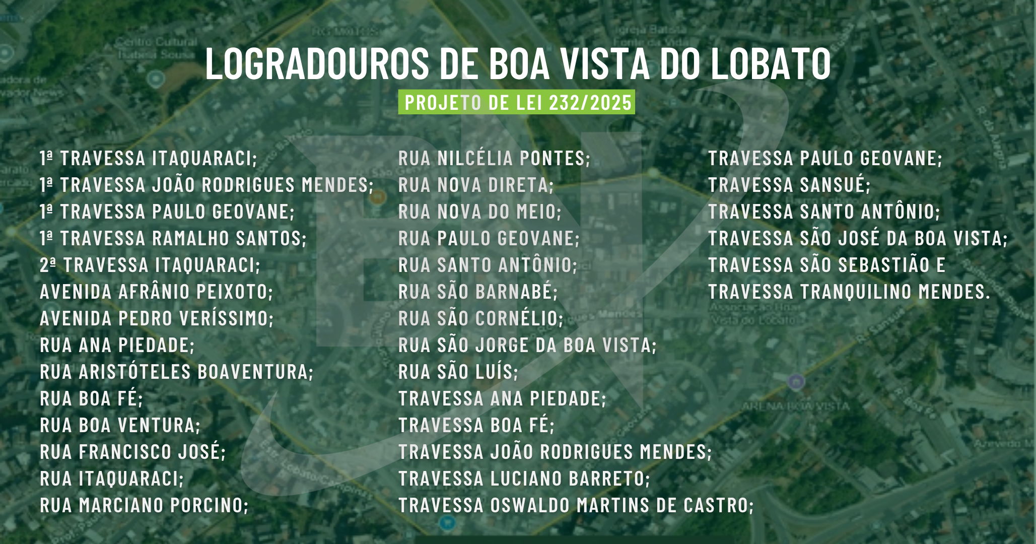 Confira a lista de ruas, travessas e avenidas que incluem no novo bairro: