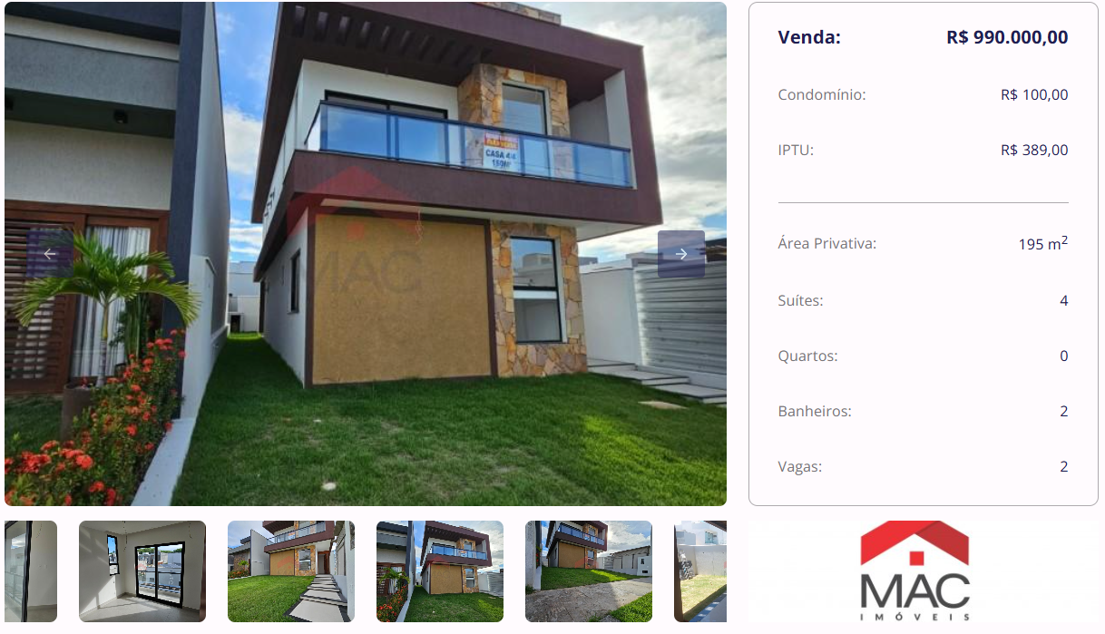 O imóvel conta com 4 suítes (sendo 1 no térreo e 1 master com closet), cozinha integrada com salas de jantar, estar e íntima, área gourmet com fino acabamento, jardim interno, área de serviço, 2 vagas de garagem e espaço disponível para construção de piscina.