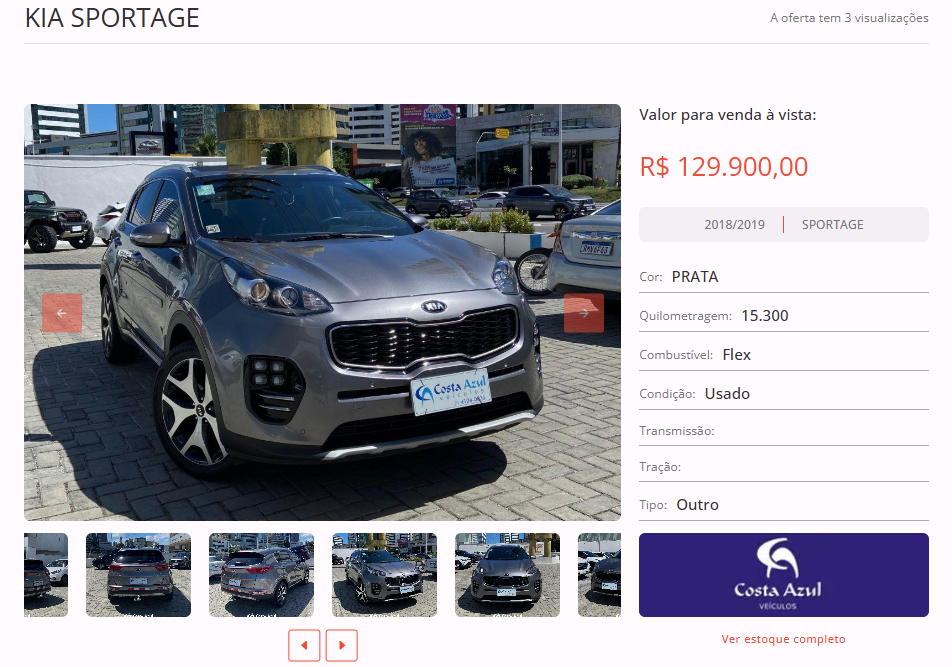 Entre as opções disponíveis em nosso site, está um KIA SPORTAGE, cor prata, ano 2018/2019, na loja Costa Azul Veículos. Todas as informações de contato estão disponíveis na nossa plataforma.