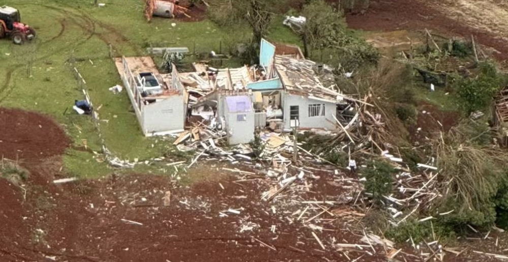 O município de Rio Bonito do Iguaçu, localizado no Centro-Sul do Paraná, amanheceu destruído após a passagem de um tornado na tarde de sexta-feira (7). De acordo com a Defesa Civil, cerca de 90% da cidade foi devastada.