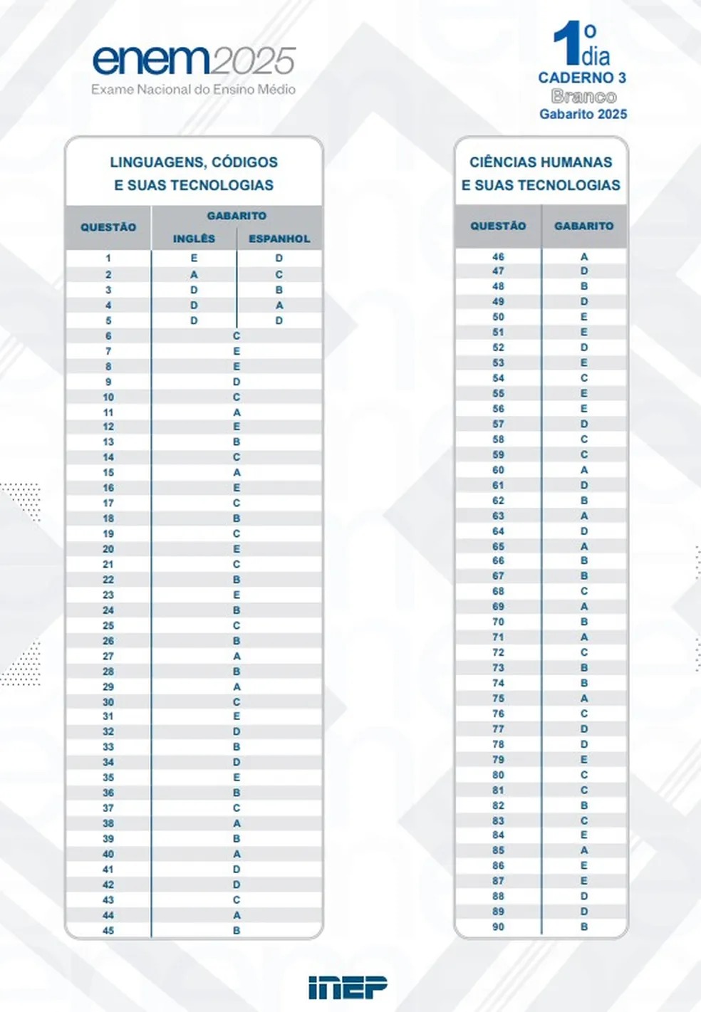 Inep divulga gabarito da primeira prova do Enem 2025; veja as respostas