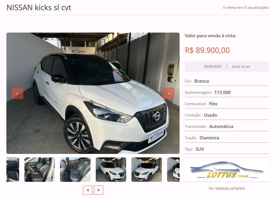 Entre as opções disponíveis em nosso site, está um NISSAN kicks sl cvt, cor branca, ano 2020/2020, na loja Lottus Veículos. Todas as informações de contato estão disponíveis na nossa plataforma.