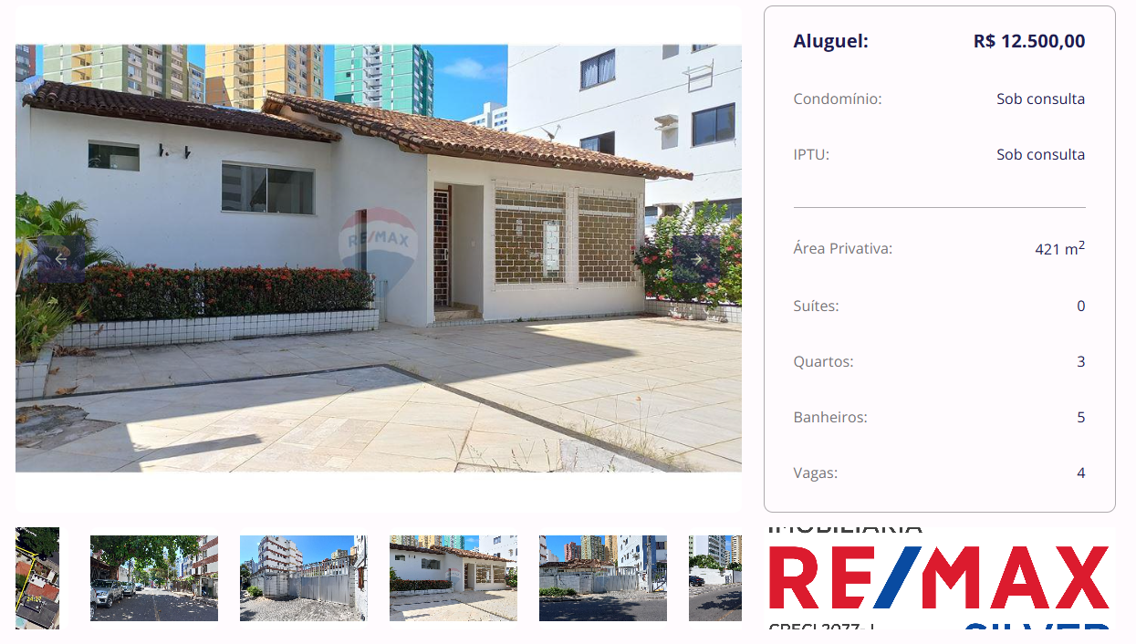 Um dos imóveis disponíveis é uma casa de 421m² na Pituba, o imóvel conta com 421 m² de área construída em terreno de 440 m², 3 suítes, 5 banheiros, jardim bem cuidado, ampla garagem coberta para 4 veículos, acessibilidade total para cadeiras de rodas, dependência de empregada, lavanderia e área verde. Localizado na Pituba, em região residencial tranquila e próxima a escolas, comércio, transporte público e hospitais, a casa está desocupada, com preço reduzido e é pet friendly.