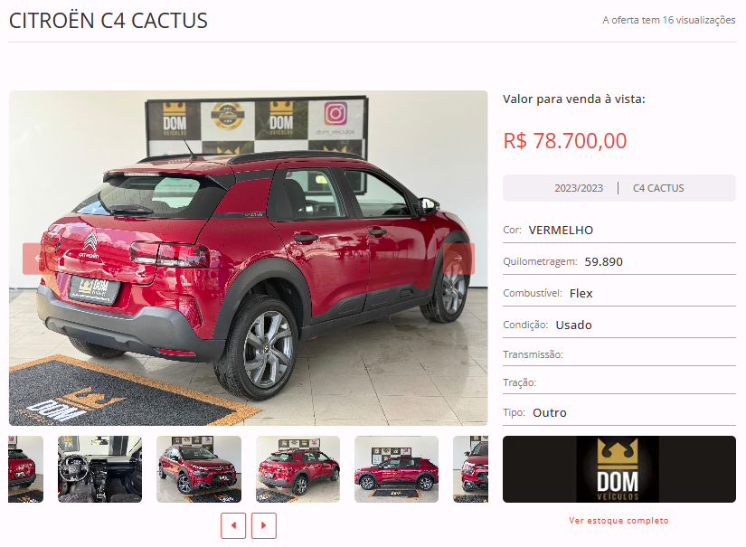Entre as opções disponíveis em nosso site, está um CITROËN C4 CACTUS, cor vermelha, ano 2023/2023, na loja Dom Veículos. Todas as informações de contato estão disponíveis na nossa plataforma.