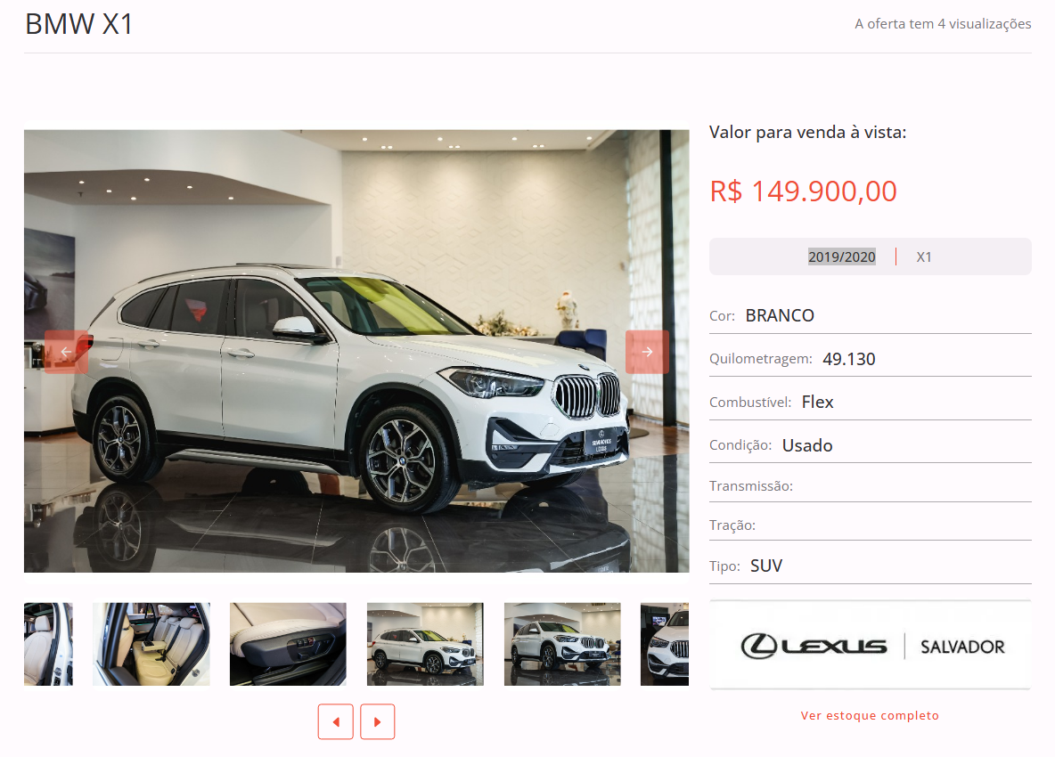 Entre as opções disponíveis em nosso site, está um BMW X1, cor branca, ano 2019/2020, na loja Lexus Salvador. Todas as informações de contato estão disponíveis na nossa plataforma.