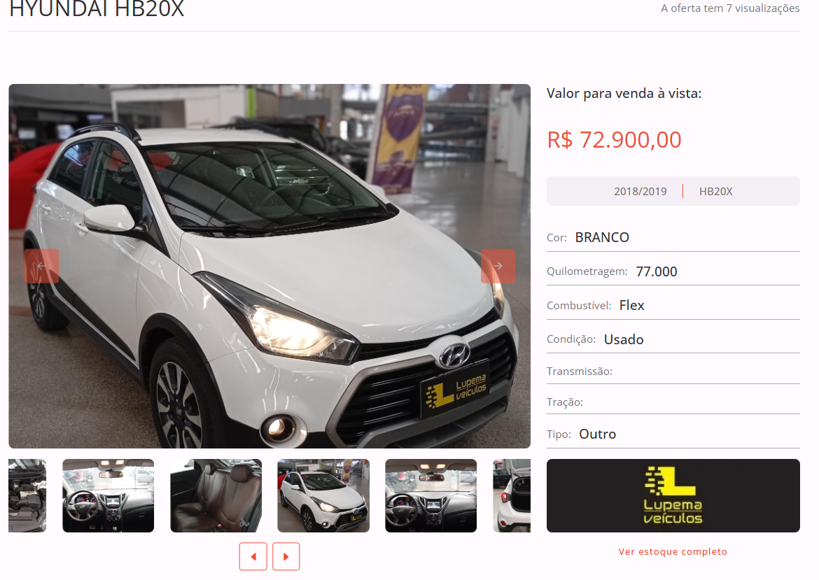 Entre as opções disponíveis em nosso site, está um HYUNDAI HB20X, cor branco, ano 2018/2019, na loja Lupema Veículos. Todas as informações de contato estão disponíveis na nossa plataforma.