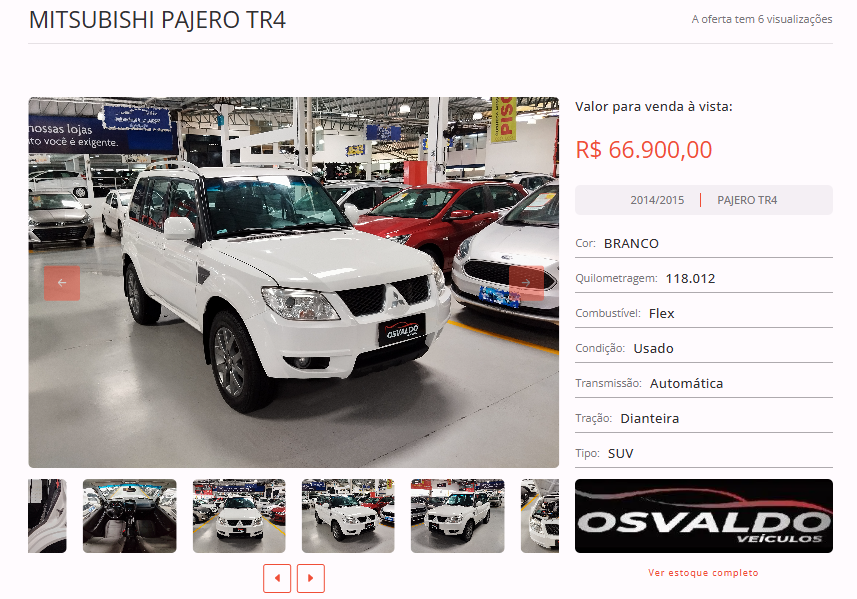 Entre as opções disponíveis em nosso site, está uma MITSUBISHI PAJERO, cor branca, ano 2014/2015, na loja Osvaldo Vei?culos. Todas as informações de contato estão disponíveis na nossa plataforma.