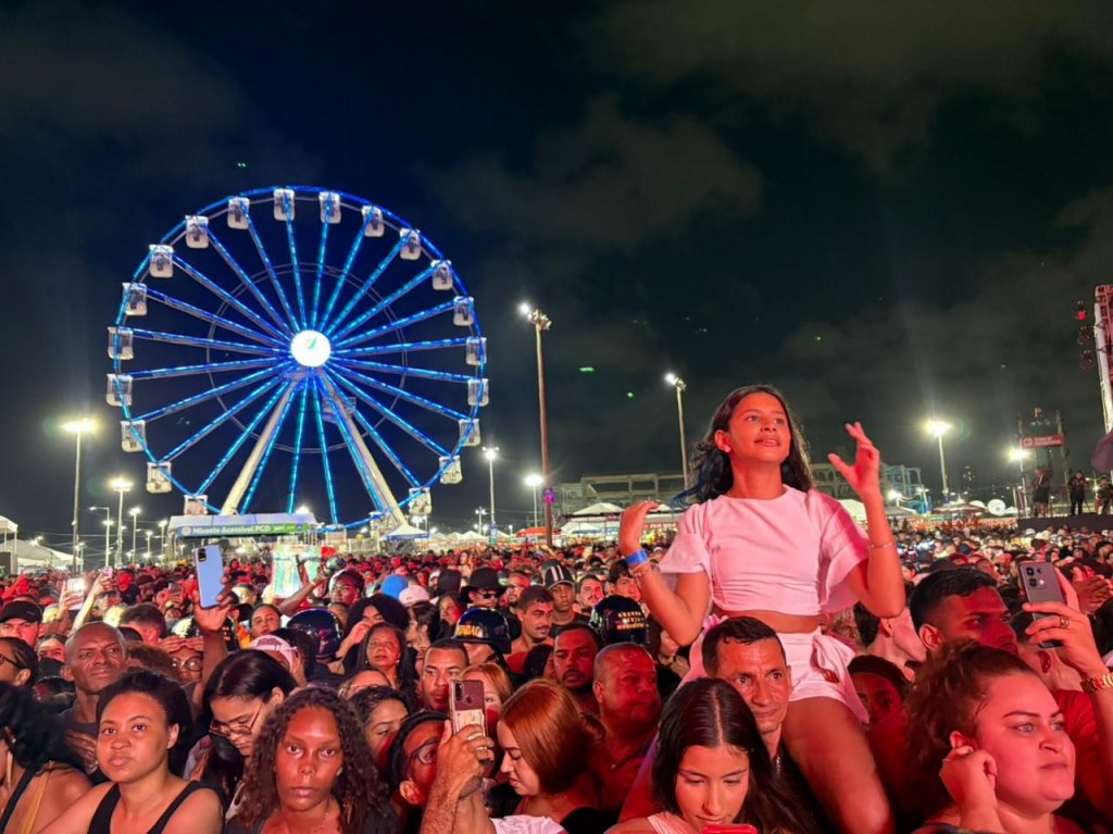 Sempre acompanhado de bebidas, o cantor chamou três pessoas para tomar cachaça, tequila e cerveja junto com ele, com o copo acoplado ao microfone no palco. A apresentação marcou o crescimento da movimentação na arena ao longo da noite e reforçou a diversidade musical do Festival Virada Salvador.