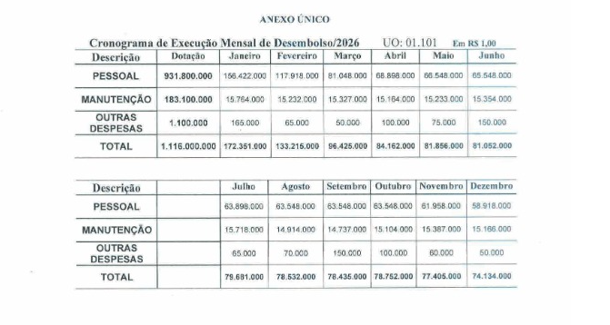 A LOA também estabeleceu um orçamento de R$ 1,7 bilhão para a Assembleia em 2026. O montante representa 2,3% dos mais de R$ 77 bilhões estabelecidos pelo governo do estado para o exercício de 2026.