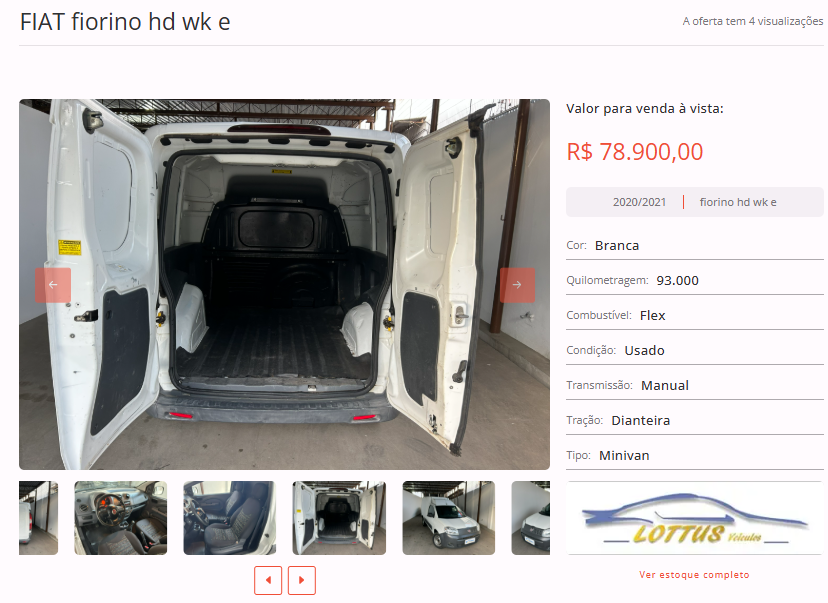 Entre as opções disponíveis em nosso site, está um FIAT FIORINO HD WK, cor branco, ano 2020/2021, na loja Lottus Veículos. Todas as informações de contato estão disponíveis na nossa plataforma.