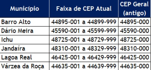 Os CEPs específicos já estão disponíveis para consulta no Portal Correios e também nas agências dos municípios.