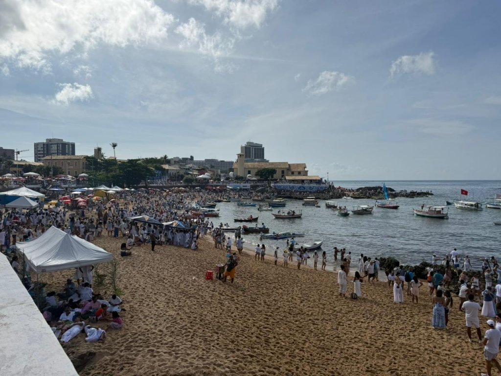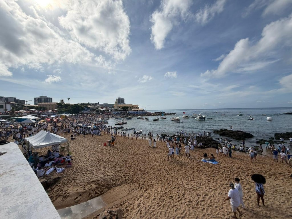 “Dia 2 de fevereiro, dia de festa no mar”. Baianos, soteropolitanos e turistas prestam homenagem à rainha do mar, Iemanjá, nesta segunda-feira (2). Em Salvador, devotos e fiéis da orixá participam do festejo, em prol da sereia, no bairro do Rio Vermelho.