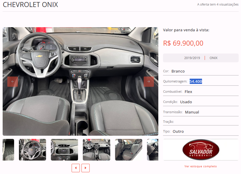 Entre as opções disponíveis em nosso site, está um CHEVROLET ONIX, cor branco, ano 2019/2019, na loja Salvador Automóveis. Todas as informações de contato estão disponíveis na nossa plataforma.