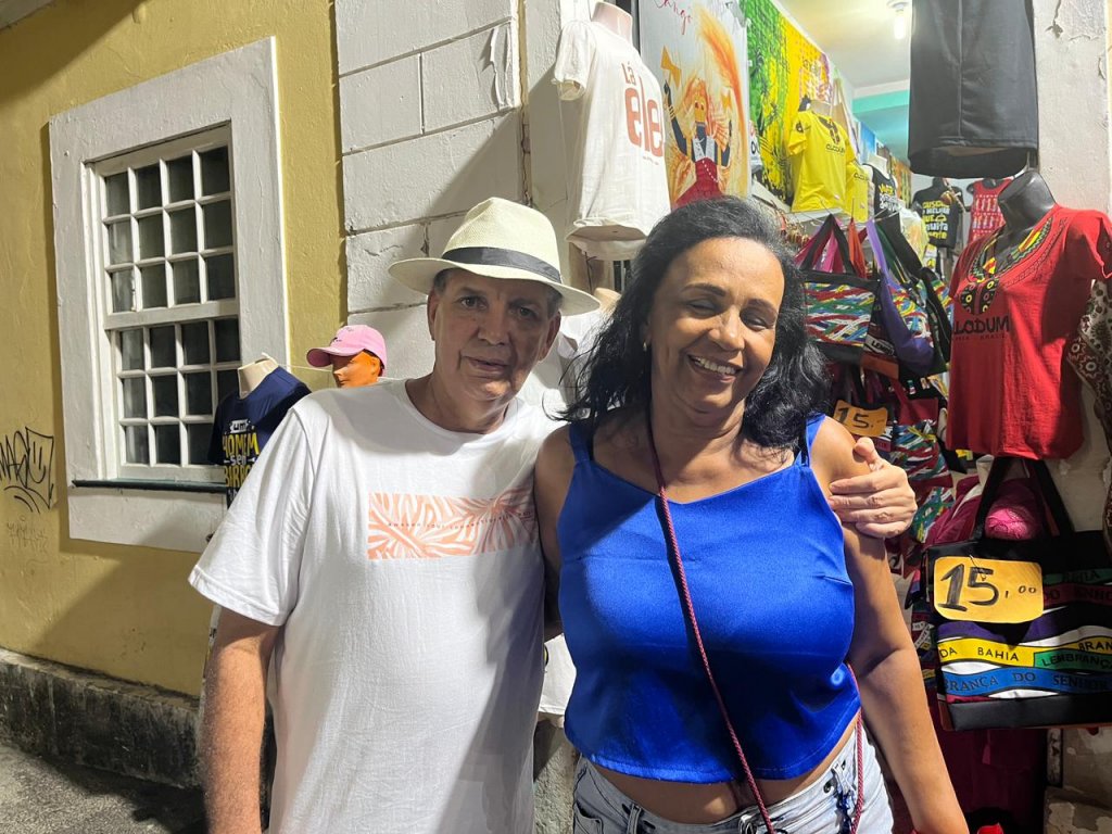 O casal Maria Aparecida e Antônio Augusto, de 60 anos, também compareceu ao Pelourinho, mas sem programação específica de atrações. Augusto detalha que comparece ao circuito Batatinha todos os anos, por conta da atmosfera animada do bairro.