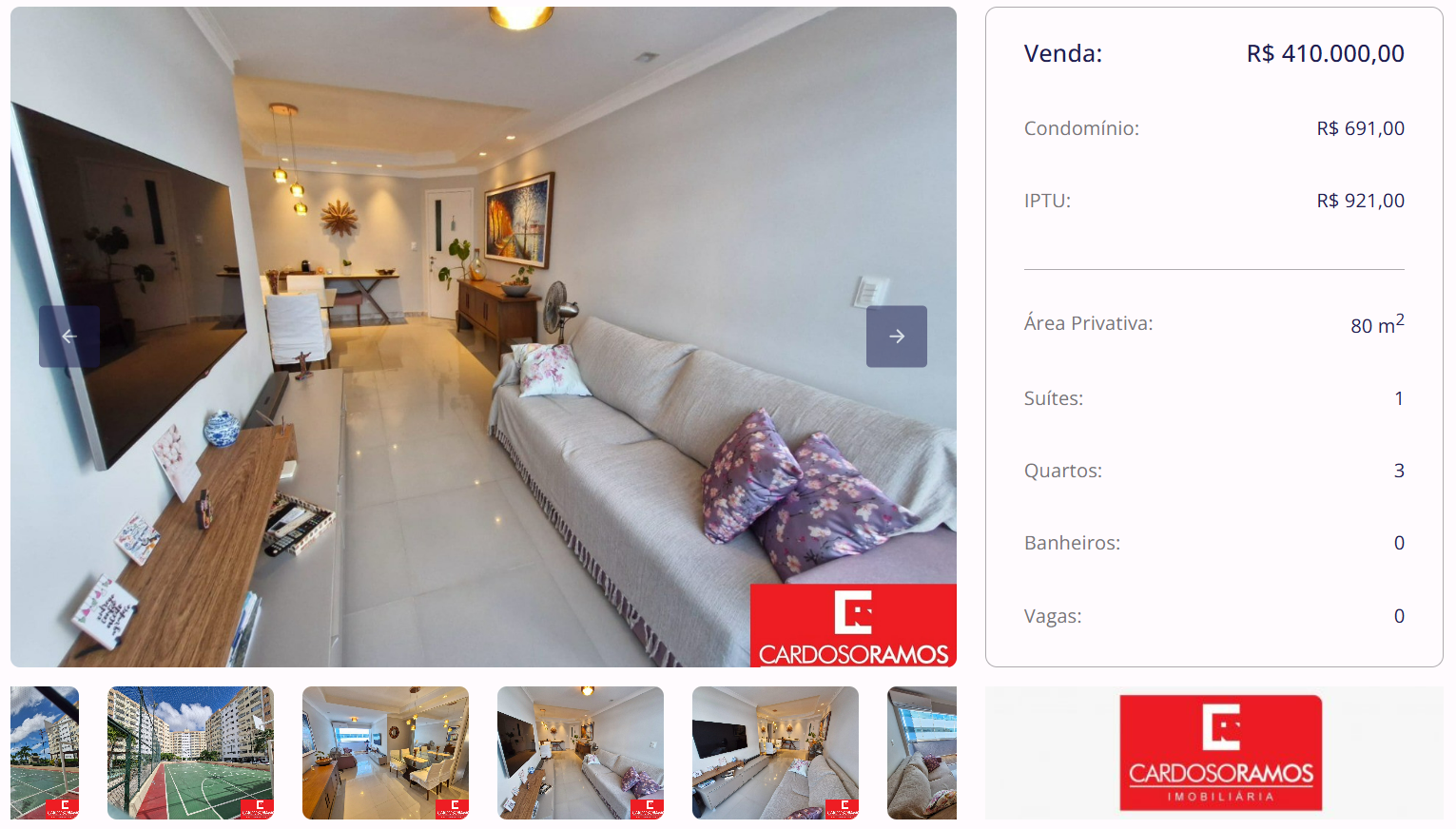 O imóvel conta com apartamento de aproximadamente 80 m², composto por 3/4, sendo 1 suíte, varanda incorporada, lavabo, cozinha, área de serviço e 1 vaga de garagem, oferecendo conforto e funcionalidade para o dia a dia.