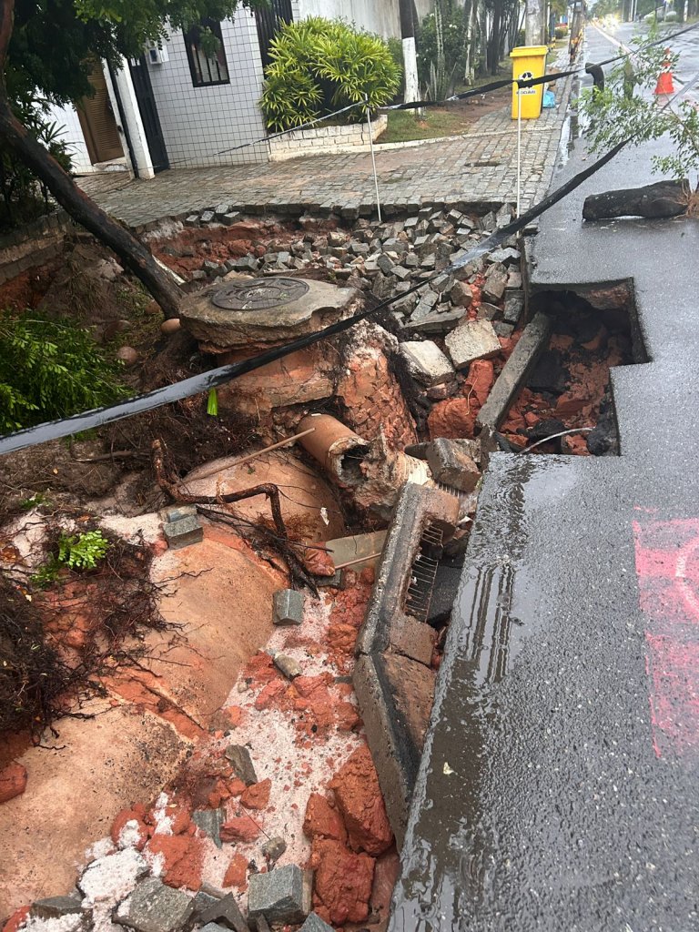 A via é uma das principais do bairro, e o buraco apresenta risco de avançar em direção à pista de rolamento, segundo as informações registradas no local. Imagens enviadas por leitores também mostram que um trecho da ciclovia precisou ser interditado.