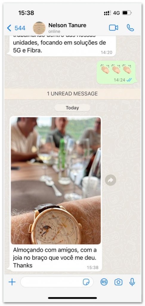 O presente foi descoberto após a Polícia Federal encontrar mensagens no celular de Daniel Vorcaro com o empresário baiano. Na interação, Tanure agradece o CEO do Master pelo relógio: “Almoçando com amigos, com a joia no braço que você me deu. Thanks”, escreveu.
