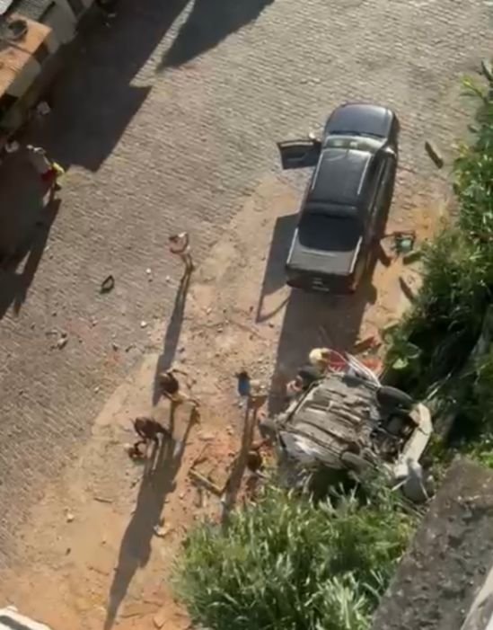 Segundo o portal PS Notícias, uma pessoa ficou presa às ferragens. Informações preliminares indicam que um adolescente estava no carro no momento da queda. O veículo teria caído de uma altura aproximada de 17 metros.