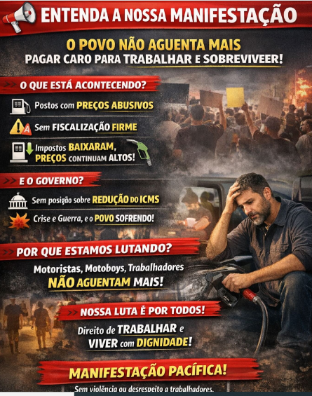 Segundo o material de divulgação, o protesto vai ocorrer próximo ao antigo HiperBompreço do Iguatemi, com horário previsto para às 10h.