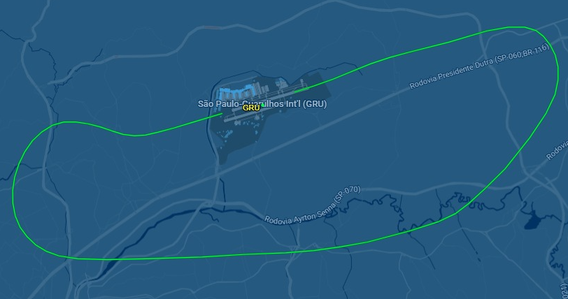 Arremete de avião em Guarulhos | Imagem: Captura de Tela / FlightAware