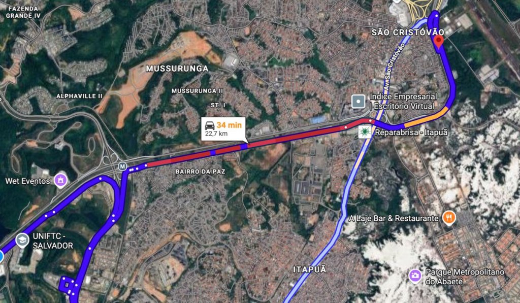 De acordo com dados atualizados de aplicativos de monitoramento, como o Google Maps, o trecho entre o Viaduto Parque de Exposições e o Aeroporto opera com velocidade média de apenas 15 km/h.
