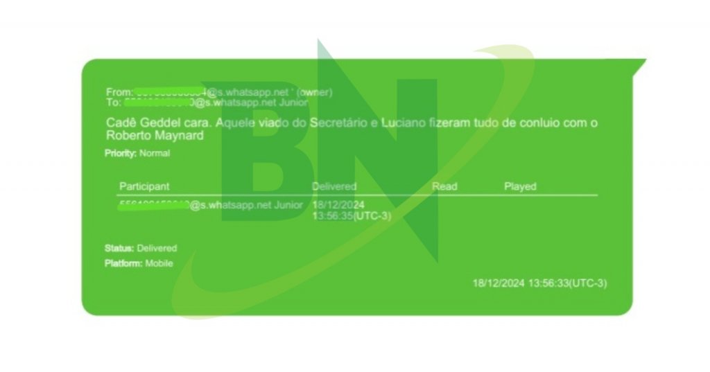 No diálogos de Joneuma com Uldurico, é mostrado que Geddel estaria realizando cobranças ao ex-deputado federal após o fim do pleito de 2024. Ele, inclusive, encaminhava para Joneuma capturas de tela de conversas que ele teria tido com o cacique do MDB, onde este supostamente cobrava o dinheiro.