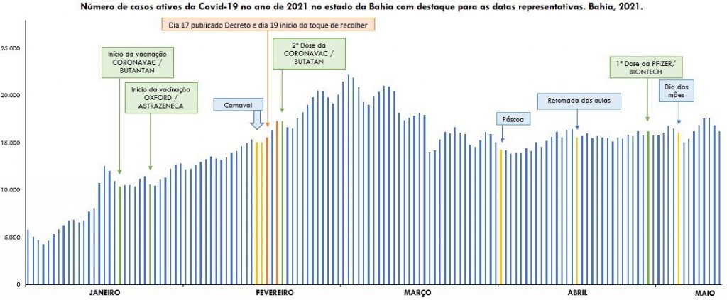 A Bahia registrou nos últimos dias crescimento do número de casos ativos da Covid-19. A Secretaria da Saúde da Bahia (Sesab) sugere que o aumento está relacionado com o Dia das Mães, em 9 de maio. Na data muitas famílias se reuniram e fizeram comemorações.