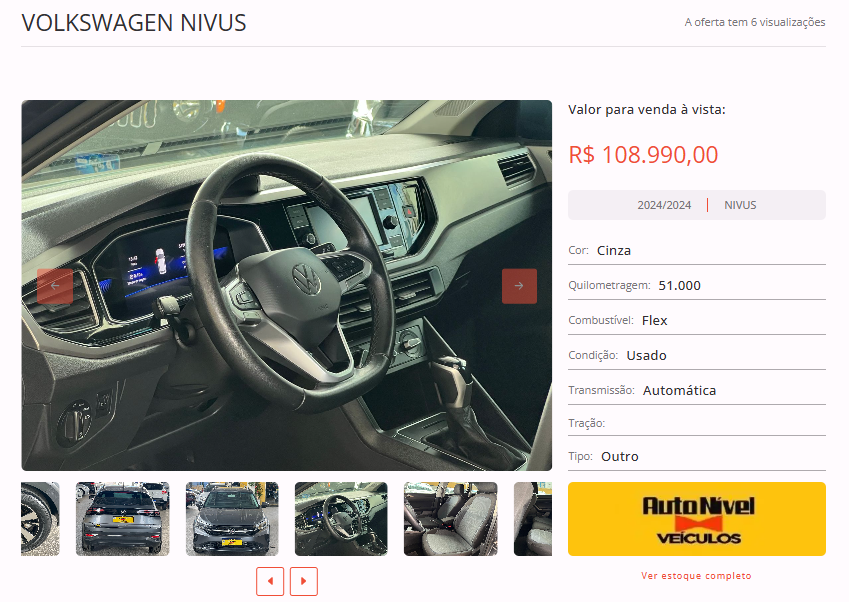 Entre as opções disponíveis em nosso site, está um VOLKSWAGEN NIVUS, cor cinza, ano 2024/2024, na loja Auto Nível Veículos. Todas as informações de contato estão disponíveis na nossa plataforma.