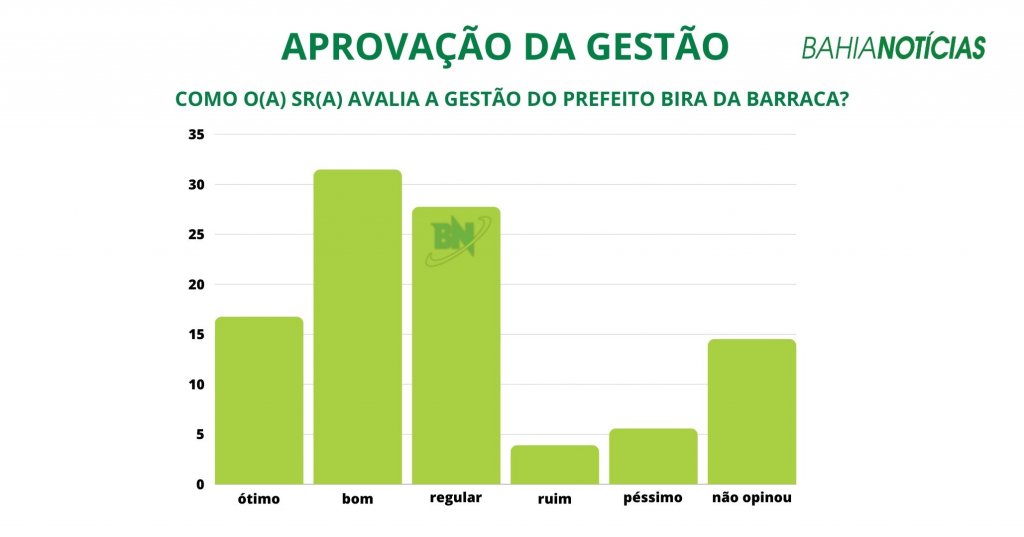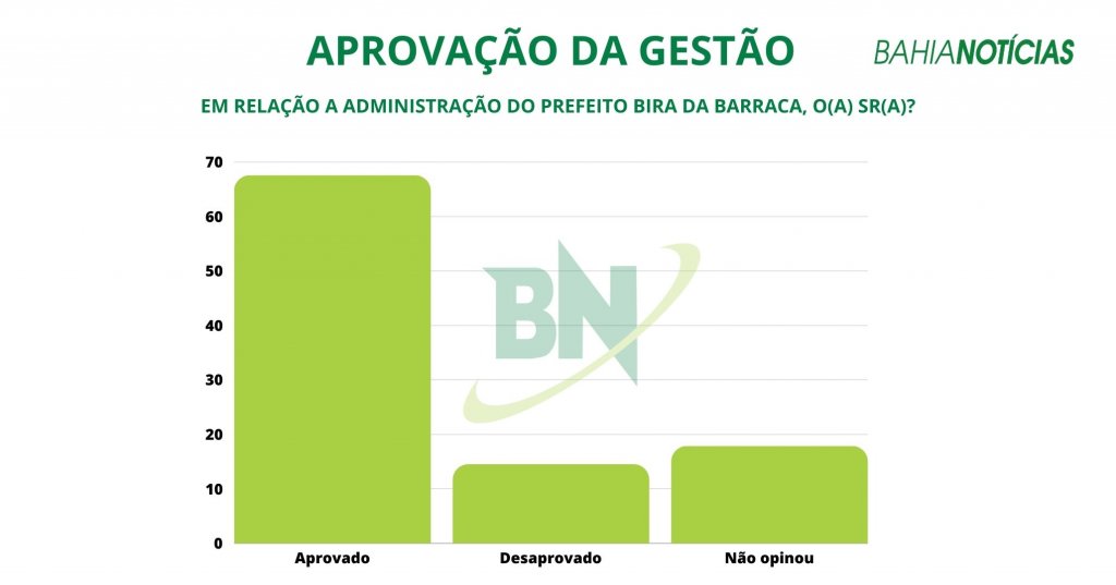Com relação aos indicadores de aprovação, além dos 67,60% dos eleitores que aprovação a gestão, outros 14,53% desaprovam e 17,88% não souberam opinar. Entre as avaliações, 16,76% caracterizam o mandato de Bira como ótimo; 31,47% como bom; 27,75% dos eleitores definiram como regular; 3,91% como ruim; 5,59% como péssimo e outros 14,53% não souberam opinar.