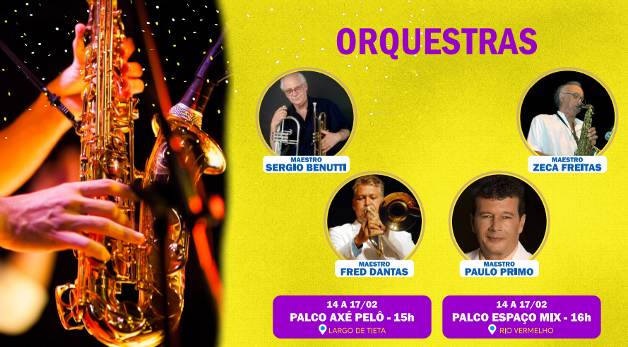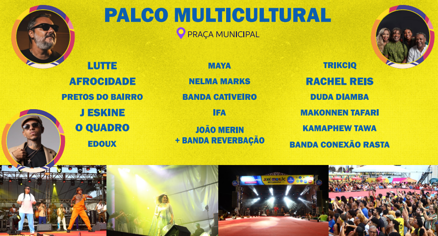 A programação contará com personalidades de diferentes gêneros musicais, a exemplo do samba, pop, MPB, entre outros. Entre os artistas eque vão se apresentar nos espaços do Centro estão Rachel Reis, Vandal, Baby do Brasil, Magary Lord, Geronimo, Paulinho Boca, Pepeu Gomes, Luedji Luna, entre outros nomes.