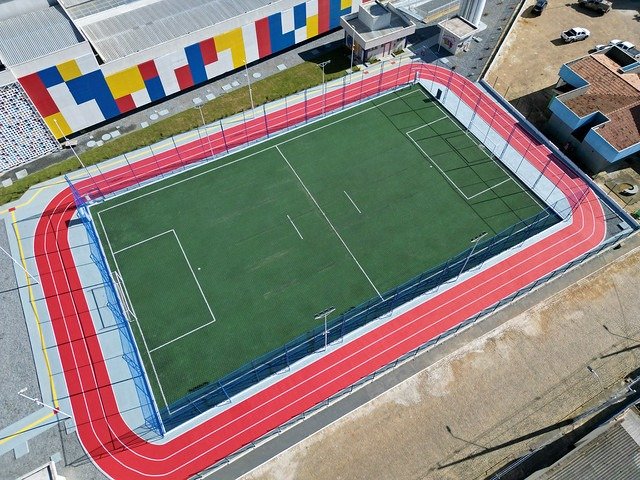 A infraestrutura conta com salas de aula, áreas de apoio pedagógico e espaços funcionais destinados à rotina escolar e permanência dos estudantes. O projeto foi planejado para atender às demandas de ensino e convivência da região.