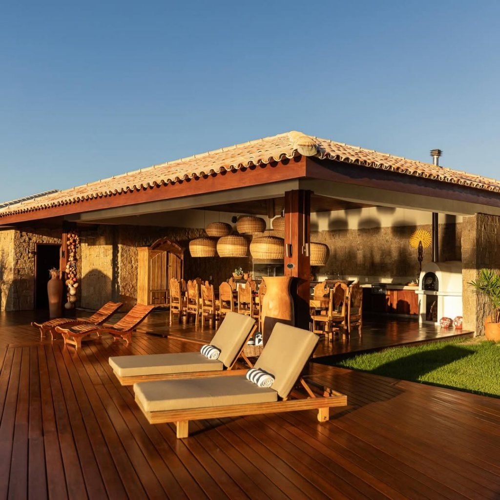 A artista está hospedada na Casa Harmonia, propriedade de alto padrão localizada a menos de cinco minutos da praia, dentro do condomínio fechado VillaVista Golf, que integra o Complexo Terravista, um dos endereços mais valorizados de Trancoso. Cercada pela Mata Atlântica e próxima às praias dos Golfinhos e das Tartarugas, a casa se destaca pela proposta de unir sofisticação, privacidade e uma relação direta com o entorno natural.