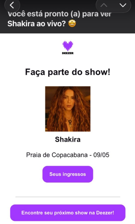 Alguns usuários do streaming receberam o e-mail com o seguinte anúncio: "Faça parte do show! Shakira – Praia de Copacabana, 09/05".