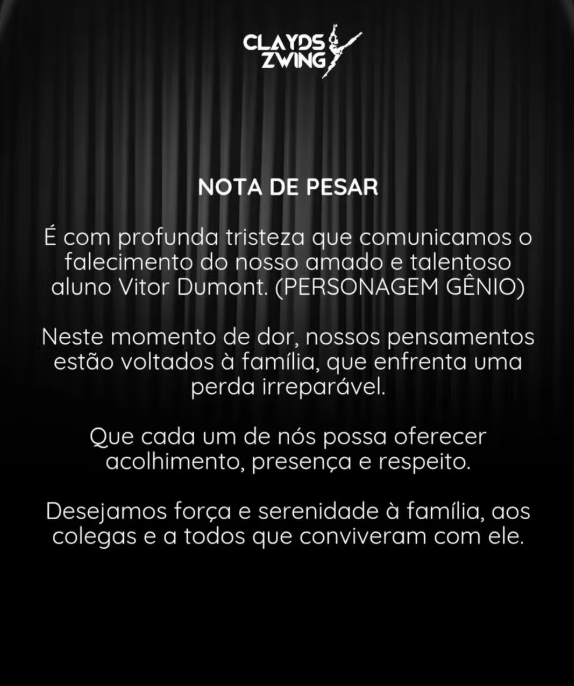 A morte do jovem de 25 anos surpreendeu a equipe e o público presente no espetáculo. Vitor interpretava o personagem Gênio e teve um mal súbito no palco, faltando 20 minutos para o encerramento da apresentação.
